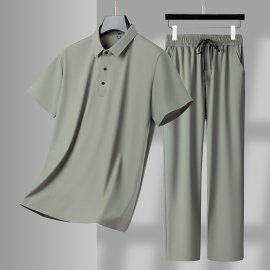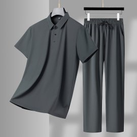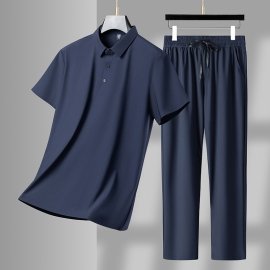 The short-sleeve polo shirt features a clean button-up design and a modern stand collar that adds a touch of polish. The breathable fabric keeps you cool under the sun, while the smooth texture feels soft against your skin. The matching long pants complete the look, offering a relaxed silhouette that suits daily wear, casual hangouts, and weekend outings.