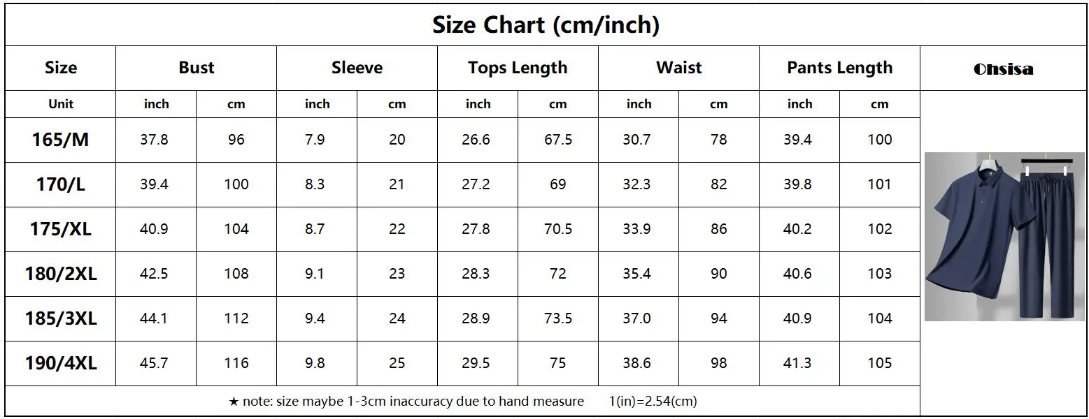 Men Long Pants 2 Piece Set Short Sleeve Tops